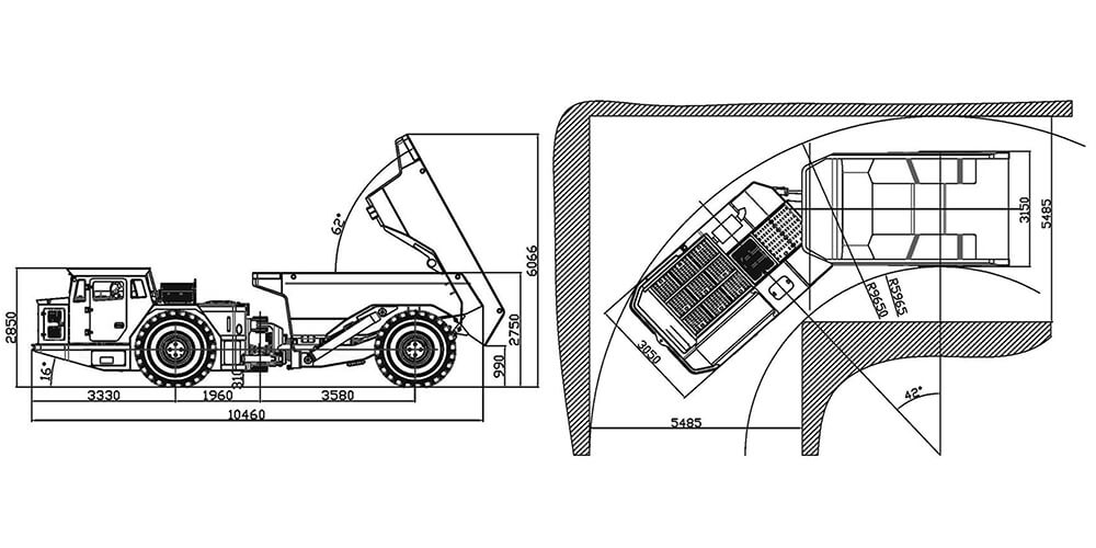 DALI UK-45 underground truck features the powerful water cooled & turbo charge Volvo diesel engine(450kW) offering high efficiency in underground operations.