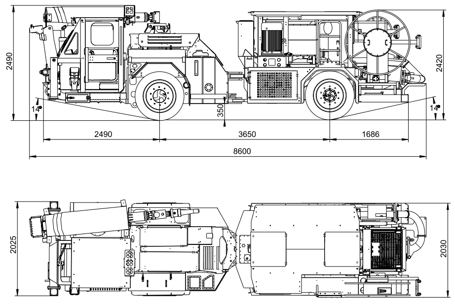 underground metal mines and engineering tunnels. It integrates walking, concrete pumping and spraying functions. It